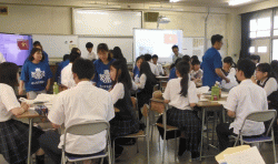 6月27日(水)5,6限目に本校プレゼンテーション教室にて「国際理解」授業の一環として、流通科学大学の留学生(ベトナム、カンボジア、ミャンマー、マレーシア等)18名と3年1組の生徒が国際交流を行いました。 本年度3年1組の生徒はベトナムについての学習を「国際理解」の授業内で行っており、学習過程で生じた疑問を直接ベトナム人に聞いてみたいという生徒たちの要望から今回の交流が実現しました。 交流では、明石と明商に関するプレゼンテーションを英語で行った後、ベトナムへ修学旅行に行くと仮定して作った自主研修の行程を留学生に対して発表しました。本校留学生のケイトリンも日本語で発表をしました。その後留学生よりベトナムに関するプレゼンをして頂き、ベトナムに関する知識をさらに深めた後、電卓対決として、本校計算事務部の部員と流通科学大学留学生が対決しました。留学生からは「日本人の高校生は電卓を使わないと聞いていたのでびっくりした」と感想を頂きました。最後にグループ交流をし「日本の高校生とベトナムの高校生の違いは」「ベトナムで流行しているものは」などと質問した後、ベトナムネームを留学生からつけてもらいました。最後にベトナム語と英語で挨拶をしました。 その後中学校の先生方に対して学科説明会を行い、国際会計科に対して貴重なご意見をたくさん頂きました。ご意見を参考にしてより良い国際会計科になるようさらなる努力をしていきたいと思います。(国際会計科副科長 西真未) . .