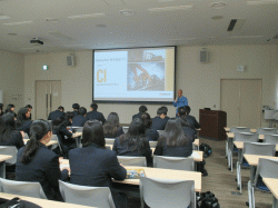 1月14日 今回の企業見学は、地元企業の大手であるキャタピラージャパン合同会社と三菱マテリアル株式会社を訪問することになりました。まず午前中にキャタピラージャパンを訪問し、企業概要の説明を受けてから施設見学です。非常に大きな工場内で油圧ショベルの開発ラインの見学をさせて頂きました。企業の担当者の方からは、安全性、品質、原価計算における標準原価を通じて無駄の排除などについての説明を受けました。高校での学びが活かされている部分もあり、継続して学ぶ必要性を感じました。質疑では、女性の経理担当の方からキャタピラー内での経理の仕事の詳細な部分やご自身の留学経験やキャリアについてのお話があり、大変参考になしました。 午後からは、三菱マテリアル株式会社への訪問です。今回は自転車での移動が不可ということで路線バスでの移動になりました。午後に工場に到着して、昼食後に見学です。企業概要と事務部部長の山本様よりご挨拶を頂き、3班に分かれて見学工程の案内を受けました。切削工具のパイオニアと言われるように、長年の技術蓄積を武器に自動車関連の機器だけでなく、航空産業や人体に関する細かな医療産業製品なども手掛けておられ、大変興味深く見学できました。 短い時間ではありましたが、今回、2社とも身近にある地元企業で企業概要と現場を見学することでより進路意識が高まりました。4月からいよいよ就職活動に挑戦です。今回の大変貴重な経験が活かせるように取り組んでいきたいと思います。最後に今回ご協力いただきましたキャタピラージャパン合同会社と三菱マテリアル株式会社の方にはお忙しい中大変お世話になり、ありがとうございました。