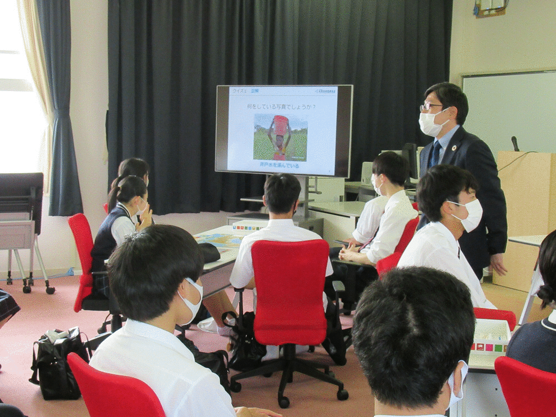 国際会計科の2年生は、国際理解実践の授業の中でSDGsについて学習しています。今回はファシリテーターとして原資剛さんを講師に迎え、ボードゲームをしながらSDGsについて学びました。SDGsの歴史や背景を復習し、ゲームスタートです。貧困や環境問題など、多数の社会的課題をチーム全員で協力しながら解決できるように行動を起こします。目標が達成できたチームや、そうでないチームもありましたが、それぞれが選択した行動により、未来が変化するということを体験し、17の目標のつながりや自分の行動が世界に及ぼす影響を考えることができたのではないでしょうか。