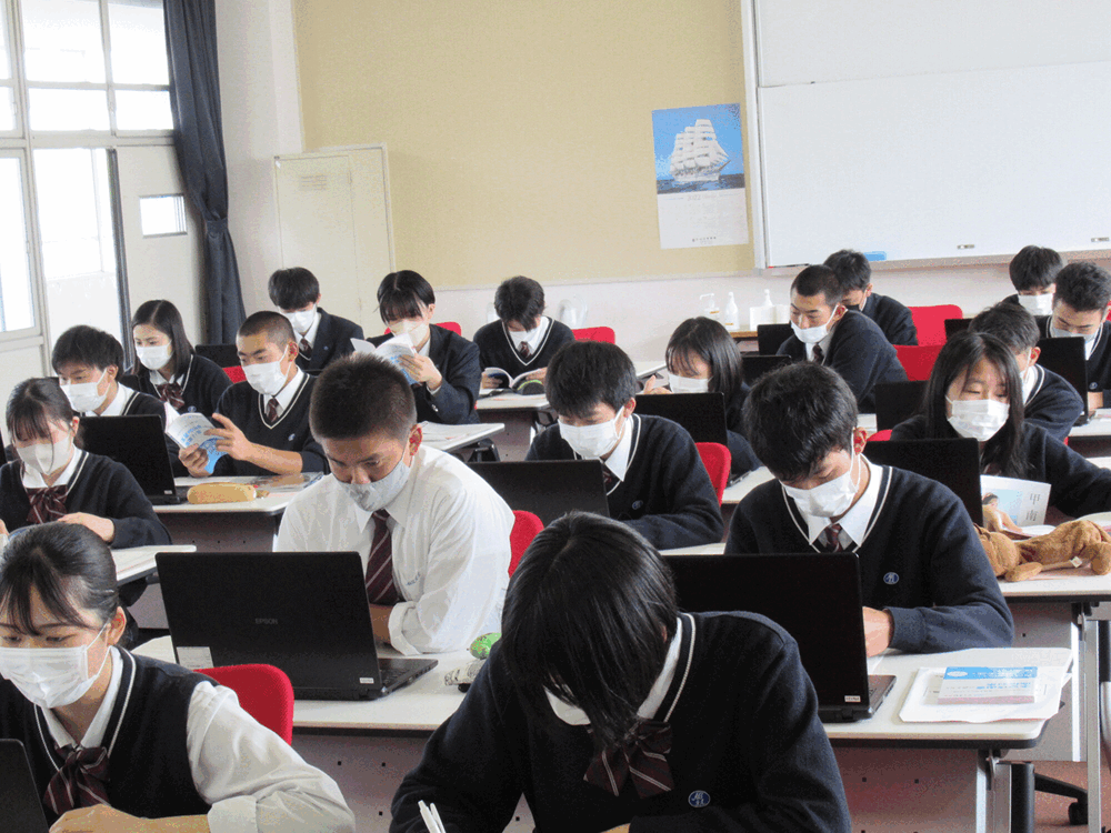 昨年実施された「志望理由書作成講座」を踏まえて、実際に志望理由書を作成しました。自分の夢や目標をもとに、自己を分析し、どんな学校や企業が自分に合っているかを考えます。自分の思いをどのように表現して伝えればいいのか、生徒たちは悩みながら2時間かけて完成させていました。互いに進路を相談しながら、各自のエピソードを見せ合ったりする場面も見られ、3年生になり進路への意識がより高まっているように感じました。作成した志望理由書は、後日添削されて返却されます。添削結果を参考にしながら、納得できる志望理由書が作成できるように改善していきましょう。