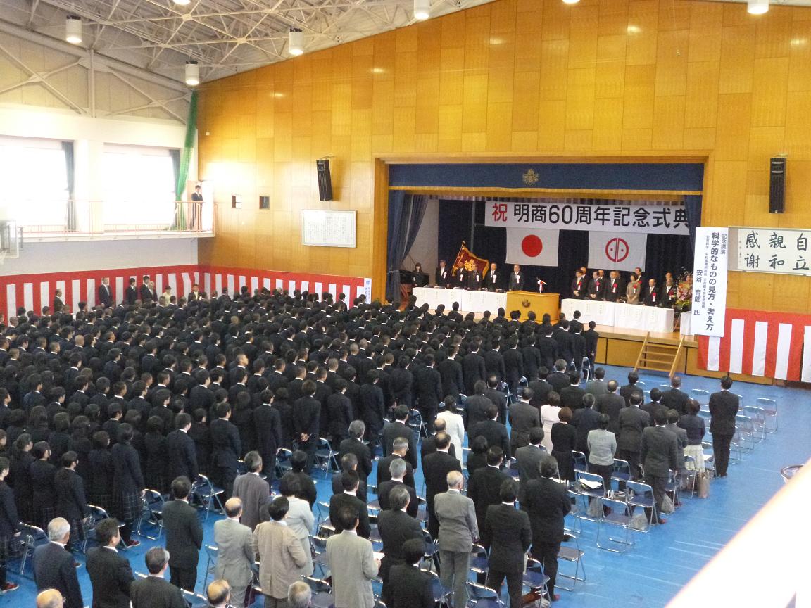 5月12日(日)、本校体育館において、創立60周年記念式典及び記念講演を行いました。 式典は吹奏楽部による高らかなファンファーレによって幕を開け、中嶋修平校長の式辞から在校生代表の小鷹狩遙さんの「喜びのことば」まで厳粛な雰囲気の中で進められ、次々とお祝いのことばが述べられました。 また、式典には泉房穂明石市長をはじめとして、歴代校長、旧職員など、100名近い来賓が参列し、在校生・職員とともに本校創立60周年を祝いました。 式典に引き続き、安斎育郎立命館大学名誉教授によって、「科学的なものの見方・考え方」というテーマで記念講演が行われました。 安齋名誉教授の趣味であるマジックの実演を交えながらの楽しい講演でしたが、同時に差別や福島の問題など、いろいろなことに気づかされ、考えさせられる内容でした。 本校は創立60周年を迎えましたが、中嶋校長が式辞で述べたように、これからも「夢を実現するためにひたむきに努力する生徒を育み、地域に愛される学校」を目指していきます。
