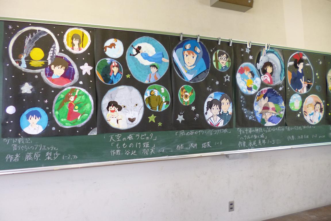 12月19日(木)、平成25年度 文化部発表会を行いました。 午前中は本校体育館において、ステージ発表が行われました。 吹奏楽部による「あまちゃん」のオープニングテーマの演奏でスタート。最後のダンス部による華麗な創作ダンスまで、大いに盛り上がりました。今年は3年生3クラスがステージ発表に参加。劇あり、ダンスあり、漫才あり、とバラエティーに富んだ熱演を繰り広げていました。 中嶋修平校長は、「みんなを楽しませようという心意気、おもてなしの心が感じられた。」と講評。ステージ発表した生徒たちの積極的な取り組みを評価しました。 ステージ発表終了後、各文化部の展示が行われ、日ごろの部活動の成果を発表しました。 今年は茶華道部の薄茶席が例年以上の盛会でした。生徒や保護者・職員など多くの人たちが参加。邦楽同好会の琴の生演奏を背景に、薄茶を楽しんでいました。今年のお菓子はクリスマスツリーをかたどったオリジナルで、「輪輪輪(りんりんりん)」と命名されました。これは、今年の漢字の「輪」とクリスマスベルの「リンリンリン」という音のイメージを重ねて名づけたものです。 (写真は美術部の展示)