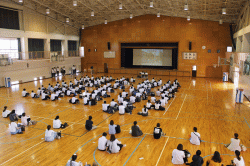校長先生のあいさつのあと、生徒会役員による学校紹介が行われ、その後、部活動体験を行いました。