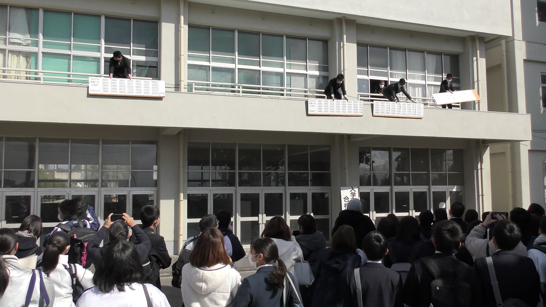 2月21日(月)午後2時に本校生徒昇降口前で推薦入学の合格者(商業科120名、国際会計科35名)の発表を行いました。