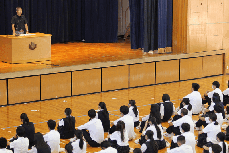 橋本校長は式辞で、「明日から始まる42日間は自分を大きく変えるチャンスです。自分を好きになり、なりたい自分をイメージし、一人になることを恐れないで、なりたい自分になったつもりで物事を考え、2学期が楽しみになるように夏休みを有意義に過ごして下さい。ふたたび9月1日に元気な姿でお互い会えることを楽しみにしています。」と話されました。
