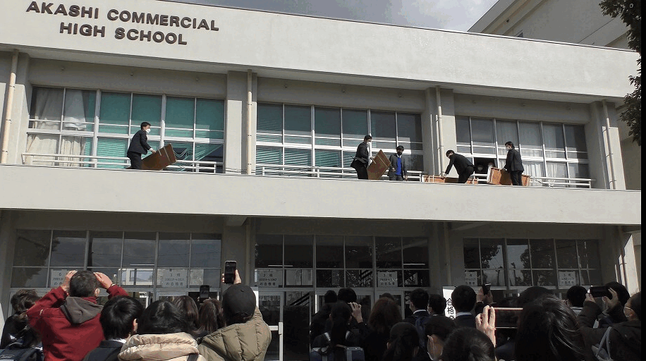 2月20日(月)午後2時に本校生徒昇降口前で推薦入学の合格者(商業科120名、国際会計科33名)の発表を行いました。