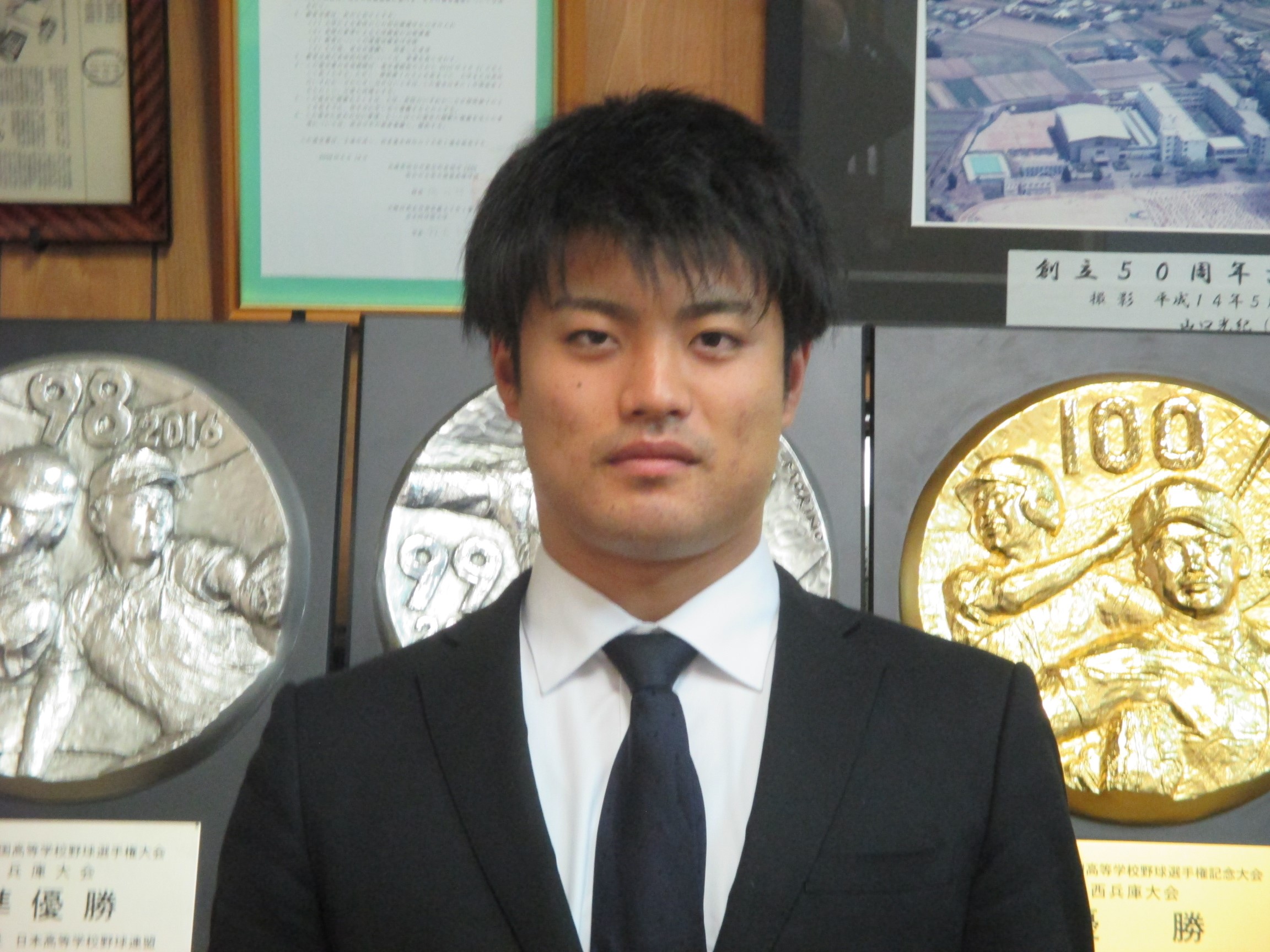 12月13日(木)西武第二ビル8Fくすのきホールにて埼玉西武の「2018ドラフト新入団選手発表会」が行われました。 1位指名の本校60回卒業生、日本体育大学の松本 航投手は、投手陣の柱となって欲しい新人選手に託されてきた背番号「17」(今オフにメジャー移籍する左腕エース・菊池選手も入団の2010年から2013年の4年間背負っていた番号)に決まり、プロ野球での目標に「胴上げ投手」と書いた色紙を掲げ、大きな拍手を受けながら「少しでも早くチームの戦力になり、新人王を取るような活躍をしたい」と抱負を述べました。 辻監督の印象を聞かれ、ウケを狙ってか「色が黒い」と答え、爆笑で会場を盛り上げた松本選手。これからの松本選手の活躍を願い、在校生、卒業生、職員一同応援していきたいと思います。 下記のリンクから会見の模様をご覧になれます。 Link 埼玉西武ライオンズ 新入団選手発表会 埼玉西武ライオンズオフィシャルサイト スポニチ 日刊スポーツ サンスポ 新入団選手の一覧 (参考) 2014年(平成26年)5月3日 春季大会 報徳高校戦 明商3年在校時の動画 明商 小野(6回) →松本(2回)-吉高 報徳 田中-岸田(大阪ガス→2017年 ドラフト巨人2位) 2013年(平成25年)5月6日 春季大会 社高校戦 明商2年在校時の動画 社 長尾(3回)→新免(3回)→永尾(7回2/3)-小端 明商 島(3回)→小嶋(4回)→松本(7回)-時吉