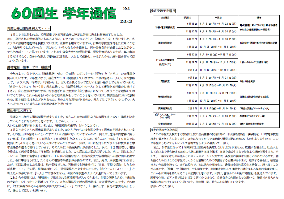 2年生の学年通信NO,3