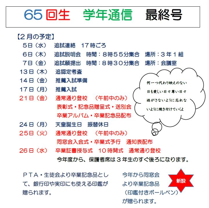 3年生(65回生) 学年通信