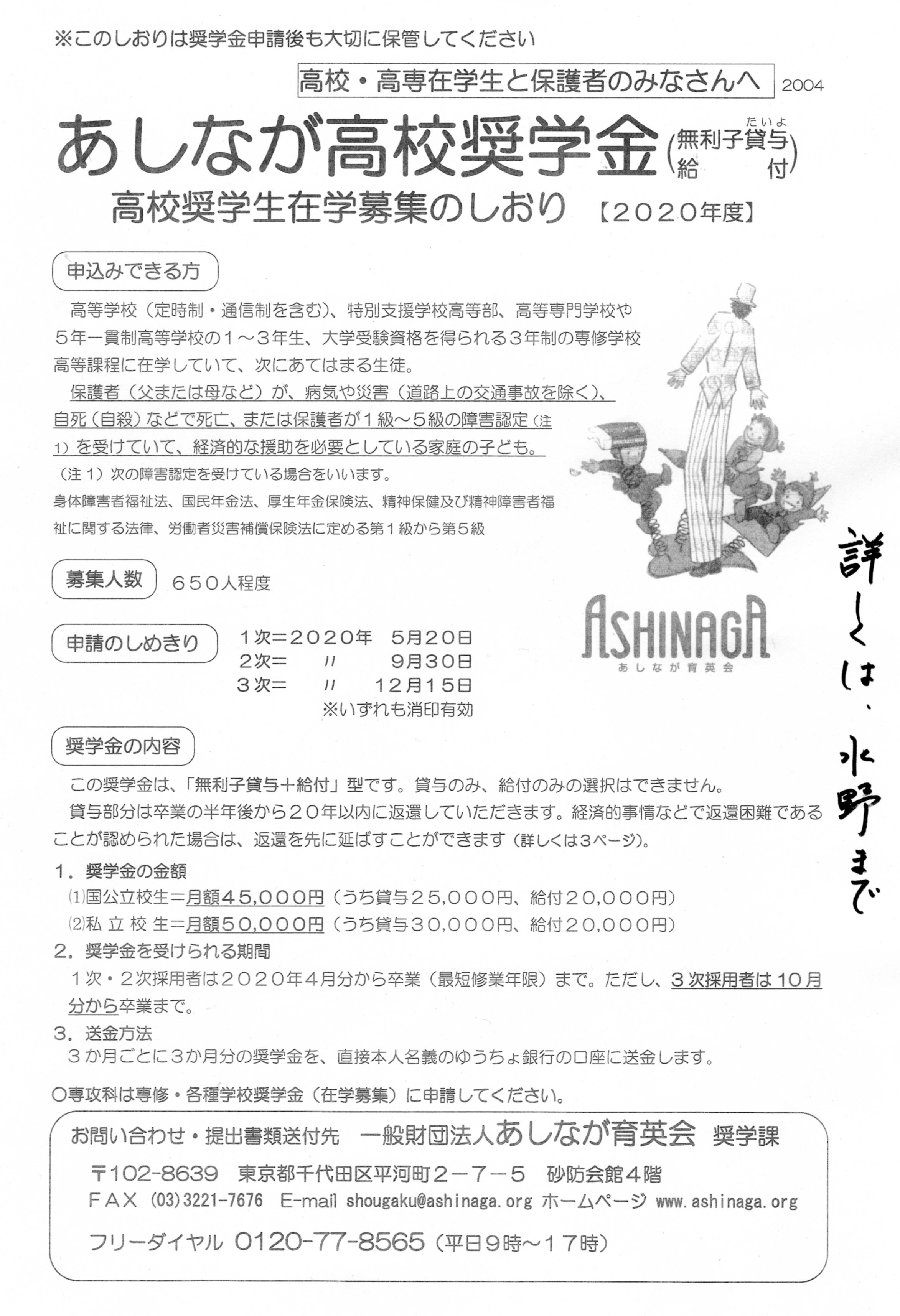 あしなが高校奨学金の奨学生募集