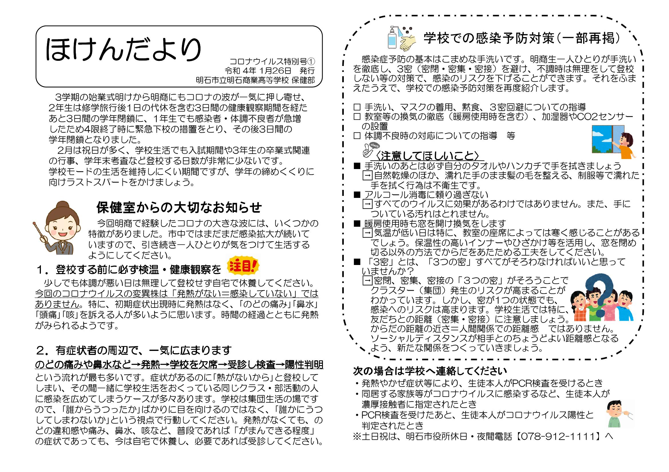 明商の保健部が発行する「ほけんだより」などをこのページ下部に載せています。