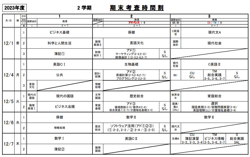 2学期期末考査時間割(PDF:105KB)